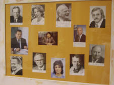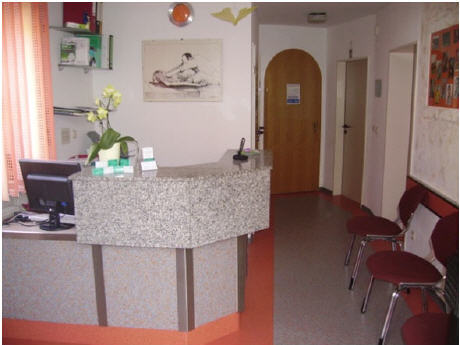 In der Praxis angekommen, finden Sie rechter Hand zwei Promischaufenster mit Autogrammkarten, welche ich bei meiner Tätigkeit in einer Promiklinik in Bad Wiessee behandelt habe.